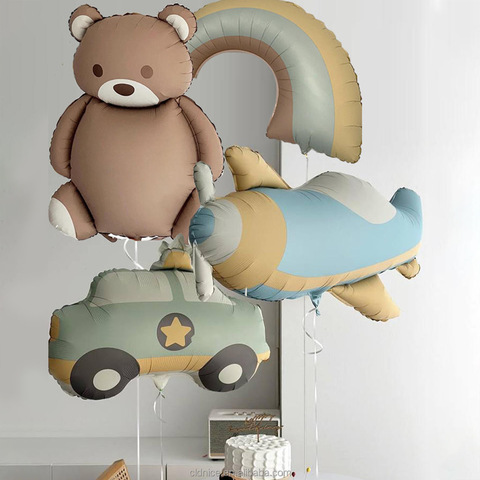 Belle voiture avion arc-en-ciel ours Parachute dessin animé ballon joyeux anniversaire fête décoration ballons jouet feuille d'aluminium ballon